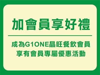 成為G1ONE晶旺餐飲會員,享有會員專屬優惠活動。